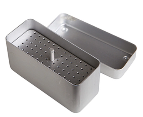 Endobox mini je praktičen pomočnik v vsaki ordinaciji, izdelan iz aluminija. Odprtine so namenjene ročnim kot tudi strojnim instrumentom, tudi v izvedbi z silikonskimi vložki za shranjevanje polnil (gutta-perche). Box je primeren za avtoklaviranje, dostavljen je z pokrovom in snemljivim polnilom.