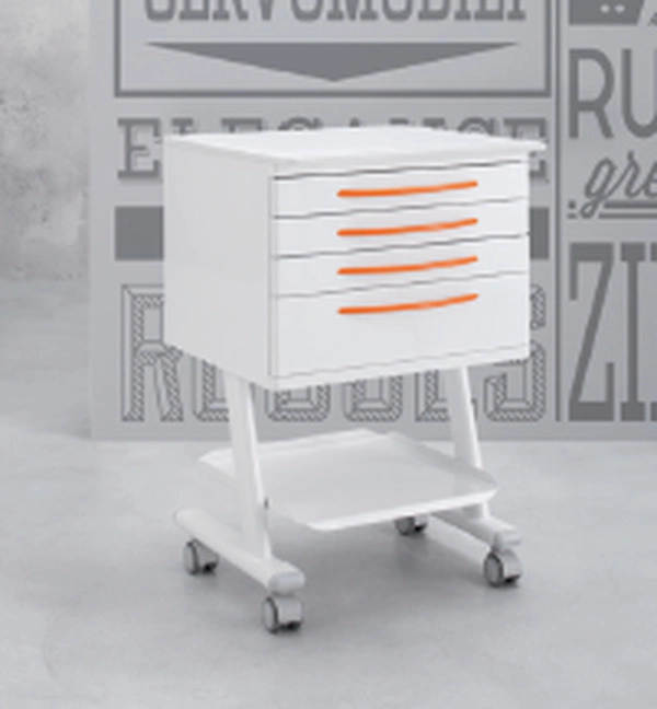 Element na kolesih odlikujejo elegantne in kompaktne linije. Opremljen je z ročaji za lažje premikanje v prostoru. Predali so opremljeni z različnimi pladnji, ki omogočajo pregledno srahnjevanje pripomočkov. So enostavni za čiščenje. Delovni pult je izdelan iz koriana. Možno naročilo pulta iz laminata in stekla.