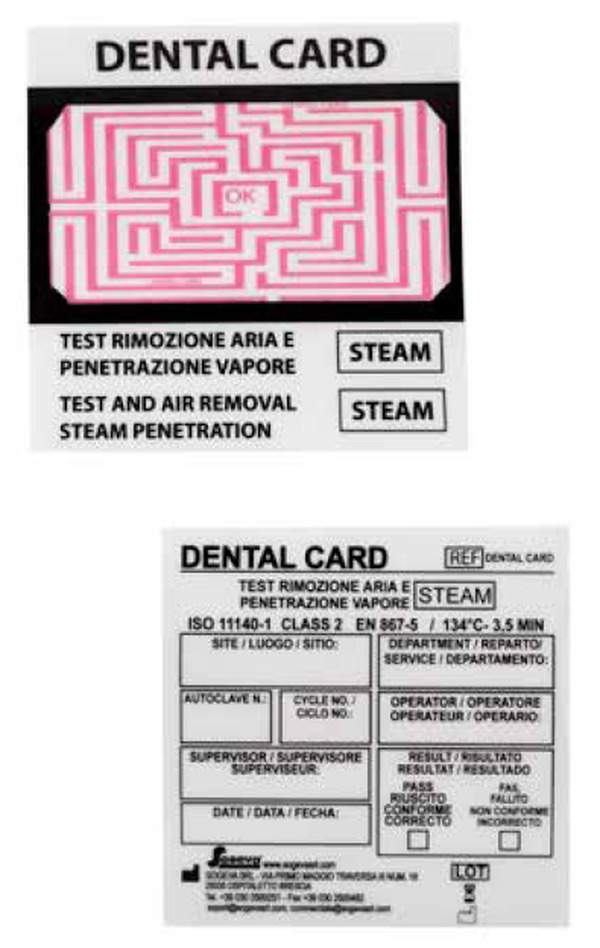 Dental Card se uporabi, da se preveri pravilno delovanje avtoklavov za parno sterilizacijo.Je v skladu z evropskimi normami EN 867.