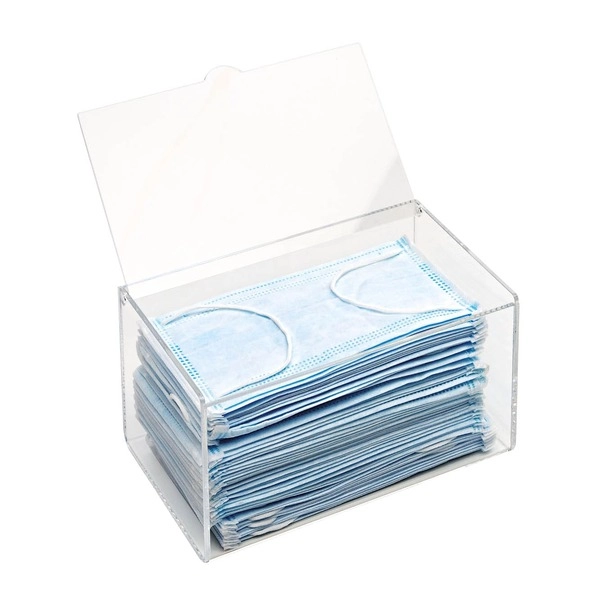 Dispenzor je izdelan iz pleksi stekla, opremljen je z pokrovom in omogoča shranjevanje 50 kosov mask.