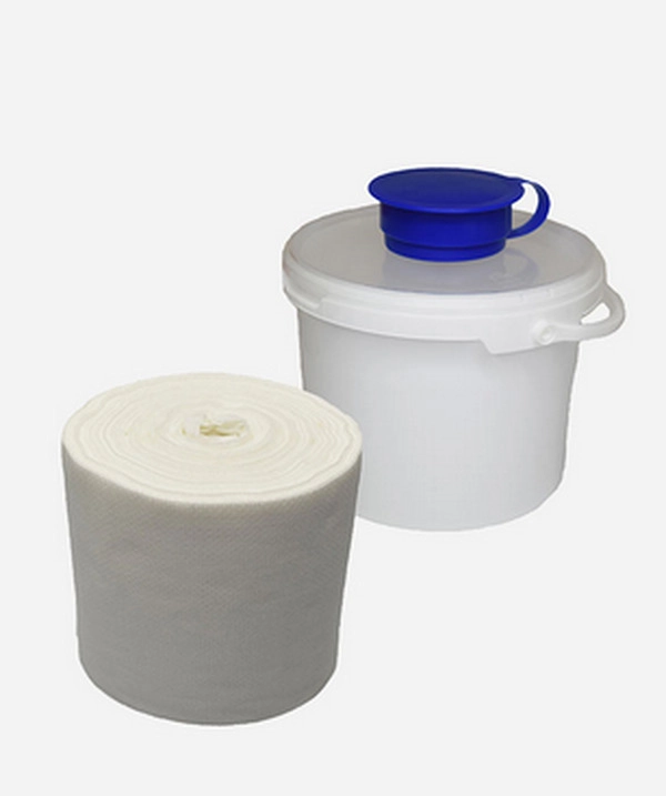 Dozirna posoda za vlažne dezinfekcijske netkane krpe. Vsebina 3,4 l, višina 15,4 cm. Možno naročilo modrega ali zelenega dozirnika, pokrov vedno prozorn. Posoda dobavljiva brez krpic.