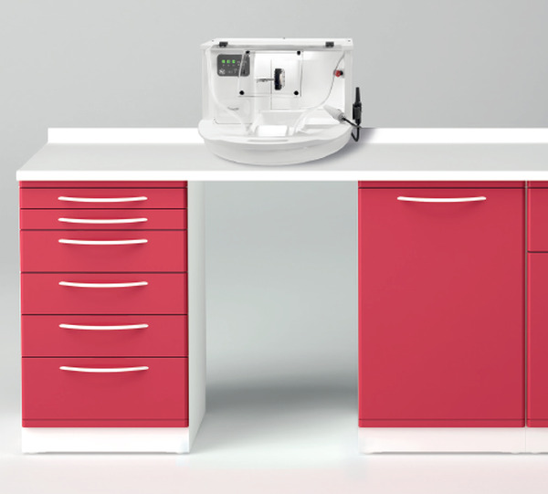 "Mini LAB" kot smo ga poimenovali je primeren za zobne ordinacije, kjer izvajajo protetična dela vsak dan. Je mobilen, dimenzij 50x48x112 cm, teža 63 kg, višina delovnega pulta 86 cm. Delovni pult je opremljen z polirnim strojem, mikromotorjem, zaščitno komoro in neonsko lučjo. Na voljo je tudi različica brez mikromotorja, cena 2.345,00 €+ddv.