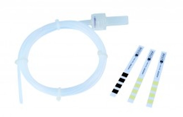 Princip delovanja: testiranje se izvaja z 1,5m dolgo cevjo, ki je na enem koncu odprta, na drugem pa ima kapsulo kamor se vstavi listič-indikator. Test vam pokaže ali je para prodrla po ozki cevki in povzročila reakcijo na koncu, kjer je vstavljen indikator-listič.