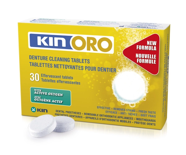 30 šumečih tablet z aktivnim kisikom za čiščenje snemnih zobnih protez, snemnih ortodontskih aparatov, ščitnikov za zobe in opornic proti škrtanju.