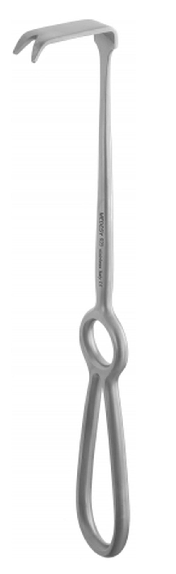 Obwegeser retraktor se uporablja pri posegih, kjer je potrebno zagotoviti dobro preglednost. Zaobljeni robovi zagotavljajo varno uporabo.