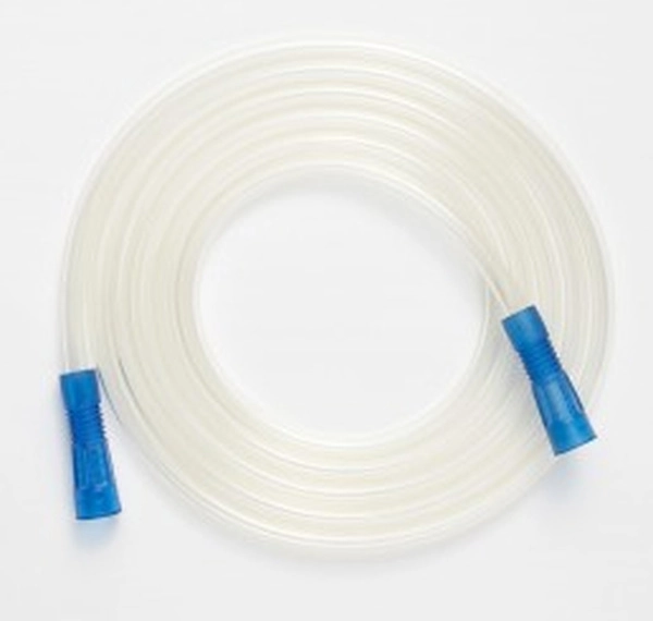 Sterilna prozorna PVC sesalna cev z dvema konektorjema za pritrditev na obeh straneh.