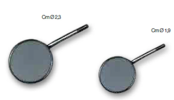 Inox ustna ogledalca so dobavljiva v dveh velikostih: premer 1,9 cm ali 2,3 cm.