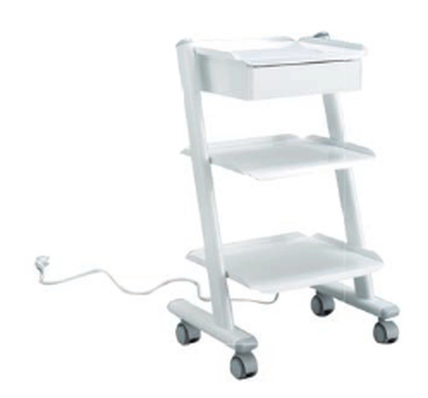 Voziček EASY PLUS je izdelan iz barvane jeklene pločevine. Je praktičen, stabilen in odporen voziček z 1 predalom, 3 policami in 3 elektro vtičnicami.
