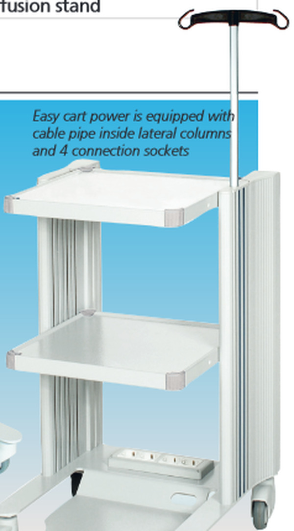 Eleganten in kompakten voziček italijanskega proizvajalca omogoča menjavo višine polic. Dobavljiv je v izvedbi z tremi, štirimi ali petimi policami. Dobavljiv je tudi z električnim priključkom. (Slika št.2, cena: 753,00 €). V tej izvedbi je možna samo varianta z tremi policami.