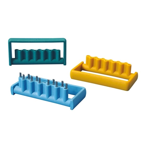 Nosilec za svedre za uporabo v ultrasoničnih kadeh in sterilizatorjih. Kapaciteta je vedno 12 svedrov (4 velike in 8 manjših odprtin).