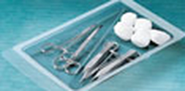 Vsebina: - 1 Metzenbaum škarje, ukrivljene, 14,5cm, - 1 Mosquito prijemalka po Halstedu, anatomsko ukrivljena, 12,5cm, - 1 Adson pinceta, anatomsko ravna, 12cm, - 1 Adson pinceta, kirurško ravna, 12cm, - 1 Mayo-Hegar šivalnik, 12cm, - 5 tamponov iz zvite gaze, v velikosti slive