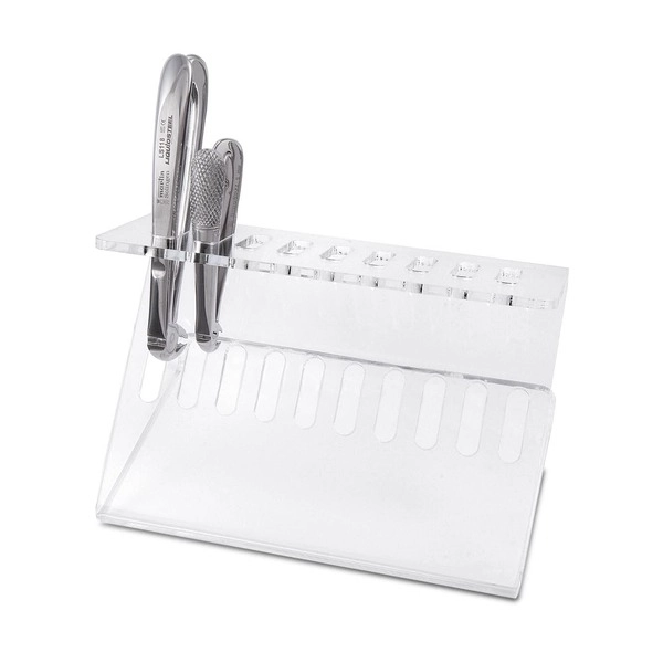 Stojalo za klešče je izdelano iz pleksi stekla.