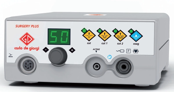 Surgery Plus je visokofrekvenčni elektrokirurški aparat za oralno monopolarno kirurgijo. Aparat vam ponuja več funkcij - rezanje (cut), rezanje z koagulacijo in samo kougalacijo. Pregledno nastavljive funkcije in digitalni prikazovalnik zagotavljata varno in enostavno uporabo aparata.